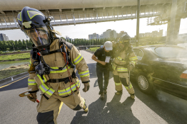 서울 성동구 가람교에서 열린 2024 안전한국훈련에서 소방관들이 차량 화재 인명 구조를 하고 있다. 2024.05.10. 뉴시스 정병혁 기자