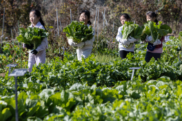 - 서울 관악구 강감찬 텃밭에서 열린 김장 채소 수확 체험 행사를 찾은 어린이들이 직접 수확한 배추를 들고 발걸음을 옮기고 있다. 2024.11.9 뉴스1 이재명 기자