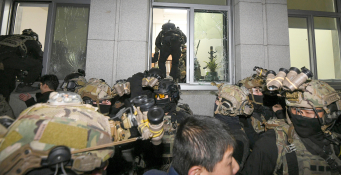 국회 내부 진입하는 계엄군윤석열 대통령이 3일 밤 비상계엄을 선포한 가운데 계엄군이 서울 여의도 국회 유리창을 깨고 내부로 진입하고 있다. 2024.12.04 노컷뉴스 박종민