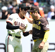 - 미국 캘리포니아주 샌디에이고 펫코파크에서 열린 2024 메이저리그 샌디에이고 파드리스와 샌프란시스코 자이언츠의 경기, 4회초 공격을 마친 샌프란시스코 이정후가 샌디에이고 김하성과 이야기를 나누고 있다.