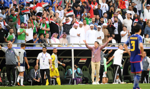- 카타르 도하 에듀케이션 시티 스타디움에서 열린 2023 아시아축구연맹(AFC) 카타르 아시안컵 이라크와 일본의 경기. 이라크 헤수스 카사스 감독이 후세인의 골이 터지자 환호하고 있다. 2024.01.19 스포츠조선 박재만 기자