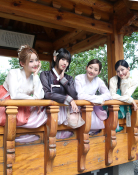 그룹 키스오브라이프 벨(왼쪽부터)과 나띠, 쥴리, 하늘이 서울 뉴스1 인근에서 한복을 곱게 차려 입고 한가위 인사를 전하고 있다. 2024.9.17 뉴스1 권현진 기자