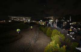 윤석열 대통령의 비상계엄 해제 요구 결의안이 국회 본회의에서 통과된 당일 새벽 국회 정문 근처에서 시민들이 모여 있다. 2024.12.04 박시몬 한국일보 기자