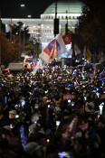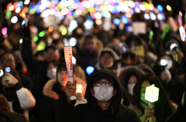 국회 앞에서 열린 내란죄 윤석열 퇴진! 국민주권 실현! 사회대개혁! 범국민촛불대행진에서 참가자들이 탄핵안 표결이 무산되자 윤 대통령의 탄핵을 촉구하고 있다. 윤석열 대통령의 비상계엄 해제 요구 결의안이 국회 본회의에서 통과된 4일 새벽 국회 정문 앞에서 시민들이 기뻐하고 있다. 2024.12.07 박시몬 한국일보 기자