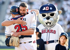 - 두산을 떠난 뒤 7년만에 은퇴식을 앞둔 더스틴 니퍼트가 잠실야구장에서 열린 KT와의 경기 시구를 마친 후 로하스와 인사를 나누고 있다. 2024.09.14 스포츠조선 허상욱 기자
