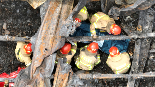 경기도 화성시 서신면 리튬전지 공자 화재 현장에서 소방대원들이 시신을 수습하고 있다. 2024.6.25 경인일보 최은성